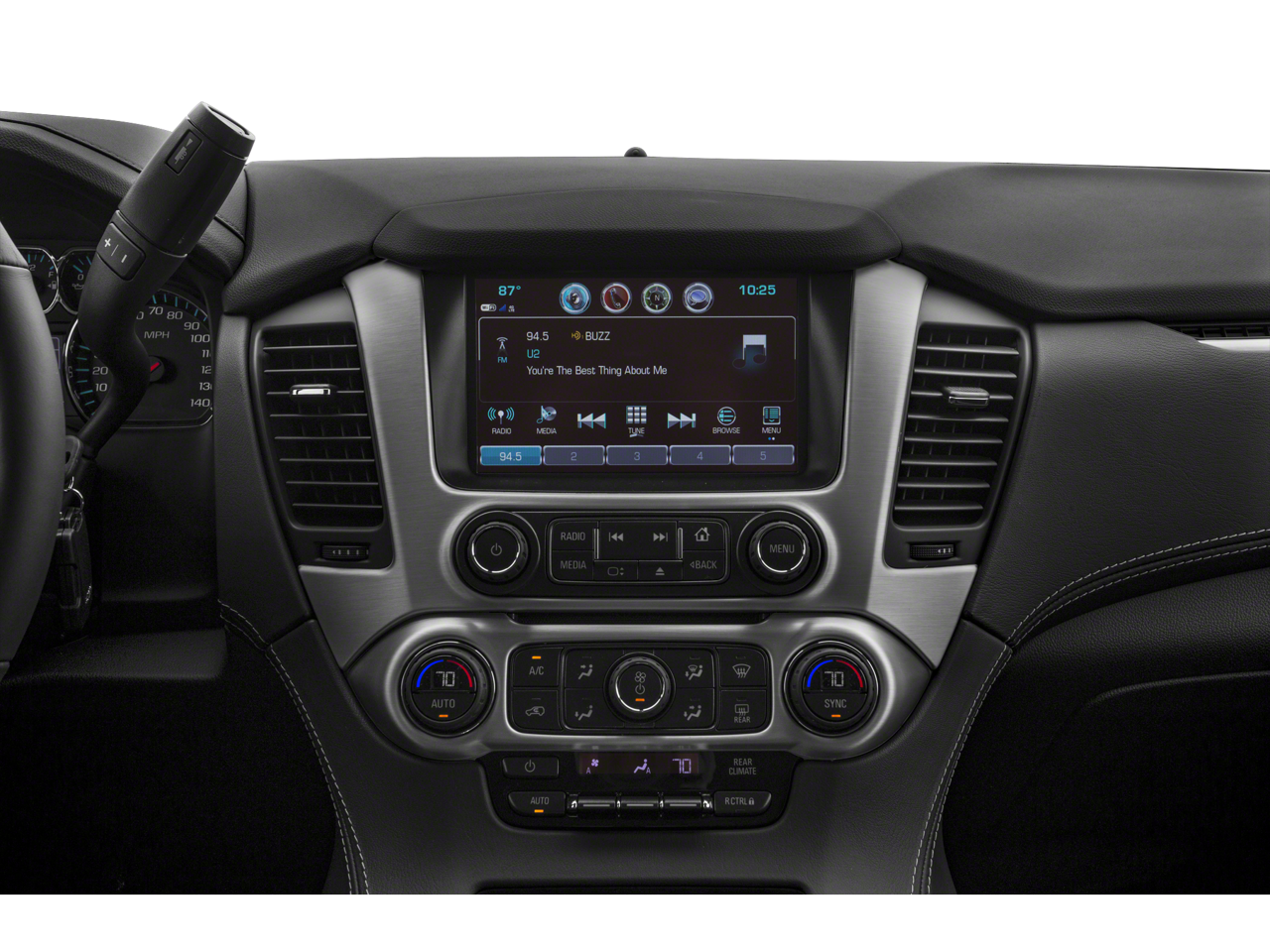 Open Road Package: AM/FM/SiriusXM Radio with Navigation; Rear Seat Blu-Ray/DVD Entertainment System; Power Tilt-Sliding Sunroof with Express-Open/close. Preferred Equipment Group 4SA: Power Release 2nd Row 60/40 Split-Folding Bench Seat; Memory Package; Heated Leather-Wrapped Steering Wheel; Hands Free Power Liftgate; Full-Feature Reclining Bucket Seats; Lane Change Alert with Side Blind Zone Alert; OnStar Basic Plan For 5 Years; Single-Speed Elec Autotrac Active Transfer Case; Black Assist Steps with Chrome Strip; Power Tilt and Telescopic Steering Column; OnStar 4G LTE; Passive Entry System; Enhanced Driver Alert Package; Electronic 6-Speed Automatic Transmission with Overdrive; 5 Auxiliary 12-Volt Power Outlets; Rear Cross-Traffic Alert; Inside Rearview Auto-Dimming Mirror; Power-Adjustable Pedals For Accelerator and Brake; Push Button Keyless Start; 18" X 8.5" Bright Machined Aluminum Wheels; Universal Home Remote; 4-Wheel Antilock Disc Brakes. HD Trailering Package: 2-Speed Electronic Autotrac Active Transfer Case; Standard Suspension Package; 3