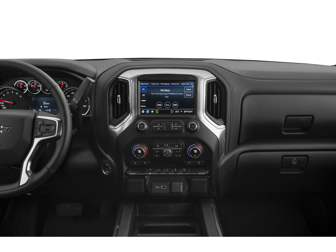Convenience Package: Manual Tilt/telescoping Steering Column; Cloth Seat Trim; Heated Steering Wheel; 10-Way Power Driver Seat with Lumbar; Floor Mounted Center Console; Dual-Zone Automatic Climate Control; Heated Driver and Front Outboard Passenger Seats; Cloth Rear Seat with Storage Package; Front Bucket Seats. Dark Essentials Package: Black Name Plates; Black Tailgate CHEVROLET Lettering. Preferred Equipment Group 2LT: LED Cargo Area Lighting; Rear Vision Camera; Bluetooth® For Phone; Remote Vehicle Starter System; 2 USB Ports (first Row); Electric Rear-Window Defogger; 5.3L EcoTec3 V8 Engine; Theft Deterrent System (unauthorized Entry); 170 Amp Alternator; Auxiliary External Transmission Oil Cooler; LT275/65R18C MT BW Tires; Compass; 4.2" Diagonal Color Display Driver Info Center; Electrical Lock Control Steering Column; Trailering Package; Standard Tailgate; Front LED Fog Lamps; Suspension Package; Steering Wheel Audio Controls; Color-Keyed Carpeting Floor Covering; OnStar and Chevrolet Connected Services Capable; Power Front Windows with Passe