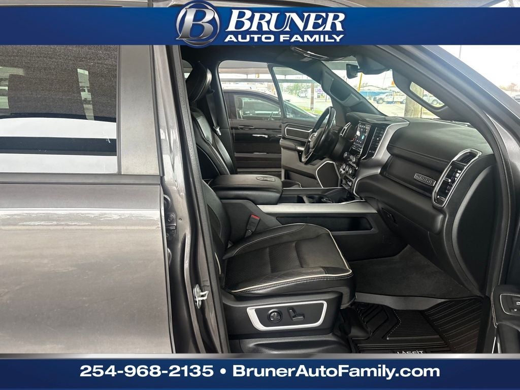 Quick Order Package 25H Laramie. Laramie Level II Equipment Group: Remote Tailgate Release; Harman/kardon 19 Speaker Premium Sound; Auto High Beam Headlamp Control; Blind Spot and Cross Path Detection; Rain Sensitive Windshield Wipers; ParkSense Front/rear Park Assist with Stop; Wireless Charging Pad; Foam Bottle Insert (door Trim Panel); 2nd Row in Floor Storage Bins; Uconnect 5 Navigation Radio with 8.4" Display. Night Edition: Twill Film Appliques; Leather Trimmed Bucket Seats; Accent Color Premium Power Mirrors; Exterior Mirrors with Supplemental Signals; Black Headlamp Bezels; Sport Performance Hood; Body Color Door Handles; Exterior Mirrors Courtesy Lamps; 22" X 9" Forged Aluminum Wheels; Exterior Mirrors with Heating Element; MOPAR Black Tubular Side Steps; Auto Dim Exterior Driver Mirror; Black Exterior Truck Badging; Anti-Spin Differential Rear Axle; Exterior Mirrors with Memory; Black Interior Accents; Dual Exhaust with Black Tips; Power-Folding Mirrors; Body Color Front Bumper; Convex Wide-Angle Mirror Insert; Grille Surround 3 Black Texture 2 Black; Body Color Rear Bumper with Step Pads; Black Painted Exterior Mirrors Caps. 22" X 9" Forged Aluminum Wheels. Leather Trimmed Bucket Seats. Uconnect 5 Navig