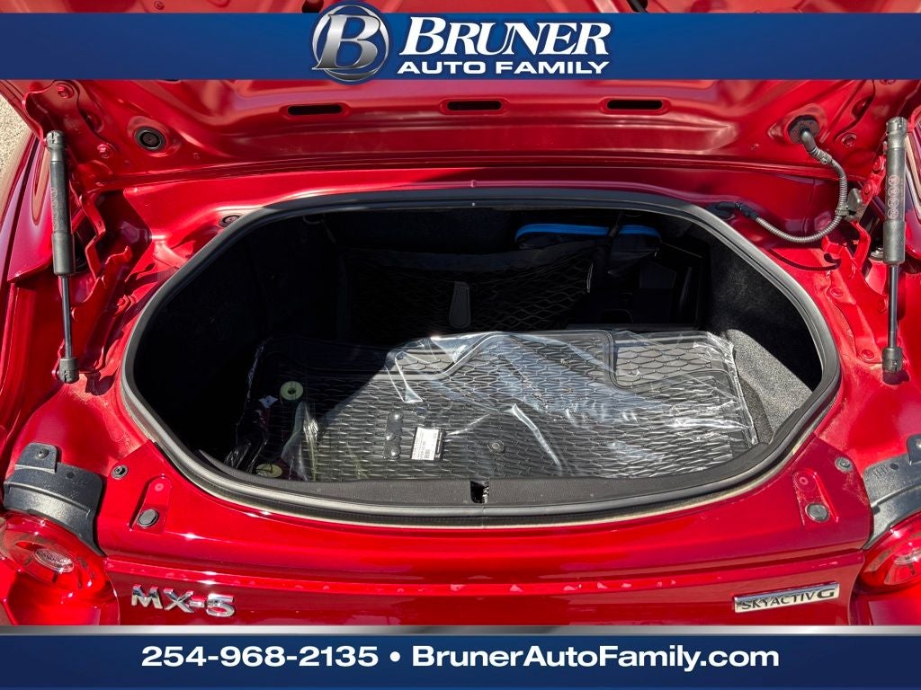 Experience pure driving excitement with this 2024 Mazda MX-5 Miata RF Grand Touring, now available in Stephenville, TX. With only 950 miles, this low-mileage roadster is practically new and ready to deliver the iconic Mazda blend of precision handling and open-top fun. The rear-wheel-drive layout and peppy 2.0L 4-cylinder gasoline engine make every twist and straightaway a thrill, while the retractable fastback roof adds coupe-like refinement and weather protection when you want it. This Grand Touring model is loaded with premium features designed for comfort, connectivity, and safety. Enjoy crystal-clear audio from the BOSE stereo, seamless smartphone integration via Android Auto and Apple CarPlay, and hands-free Bluetooth® for safe, convenient communication on the go. The Blind Spot Monitor enhances driver awareness on highways and busy roads, helping you feel confident during lane changes. Priced to sell and positioned as the best price in the area, this Mazda MX-5 Miata RF represents exceptional value for shoppers seeking an exciting, well-equipped sports car without the new-car markup. Its pristine condition and remarkably low mileage make it an outstanding opportunity for enthusiasts and daily drivers alike. Schedule a test drive in Stephenville, TX, today and feel the responsive steering, nimble chassis, and turbo-free Mazda driving purity for yourself. This Mazda MX-5 Miata RF Grand Touring won't last long at this price—act now to secure a premium driving experience.